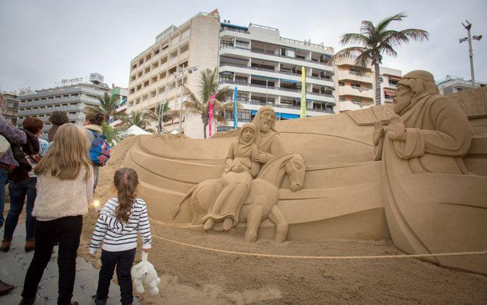 Ponad 2 tysięcy ton piasku potrzebowali rzemieślnicy z sześciu krajów, by na plaży kurortu Las Palmas na Gran Canarii stworzyć wielkie figury ilustrujące Boże Narodzenie