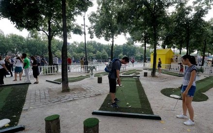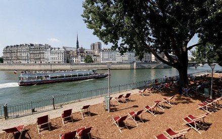 Z kolei na plaży nad Sekwaną jest piasek, są palmy, leżaki i prysznice z chłodną wodą. Ustawiono ogromną szachownicę, gdzie gigantycznymi figurami można rozegrać partię szachów lub warcabów.