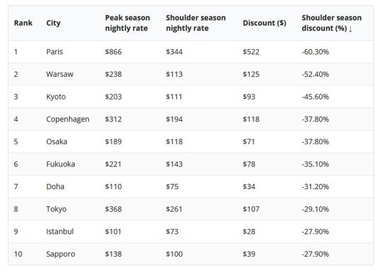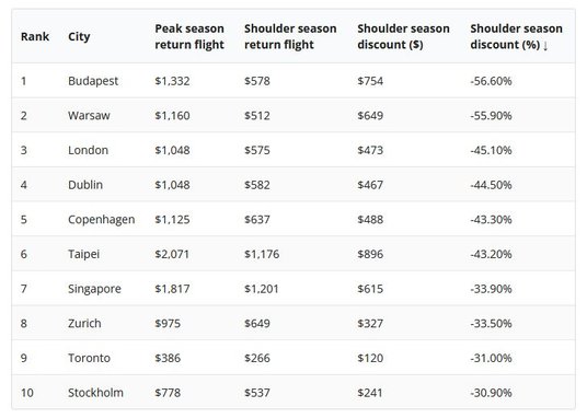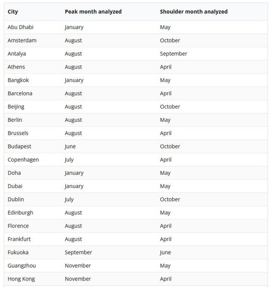 Firma Radical Storage z siedzibą w Rzymie, oferująca usługi przechowywania bagażu na całym świecie, zbadała, jakie miasta oferują najlepszy stosunek jakości do ceny, biorąc pod uwagę między innymi koszty lotów ze Stanów Zjednoczonych (badanie zostało przeprowadzone dla rynku amerykańskiego), hoteli i posiłków w trzech przedziałach cenowych (tanie, średnie, drogie - luksusowe) zarówno w szczycie sezonu, jak i poza nim.
