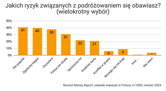Revolut, aplikacja finansowa, z której korzysta ponad 40 milionów klientów na świecie, przeprowadził wśród 15 tysięcy osób w 15 krajach (w tym w Polsce) ankietę na temat obaw w podróży.